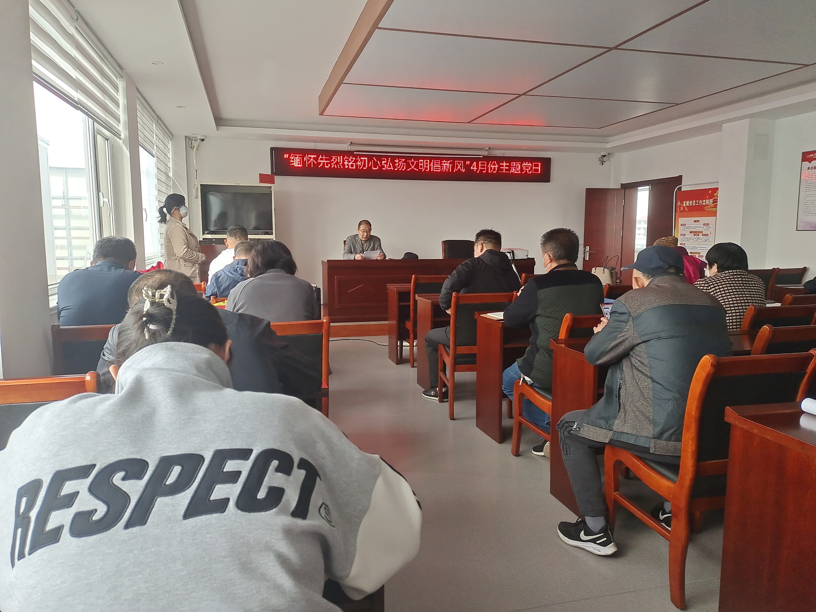 現(xiàn)在進(jìn)行第四項(xiàng)議程:組織開(kāi)展緬懷先烈文明祭祀活動(dòng)。廣泛宣傳動(dòng)員,做好移風(fēng)易俗有關(guān)工作,倡導(dǎo)大家從自身做起,以綠色低碳的方式進(jìn)行祭掃。要充分利用好區(qū)內(nèi)外紅色教育基地、基層黨校等,組織黨員開(kāi)展參觀學(xué)習(xí)活動(dòng),緬懷革命英烈、賡續(xù)紅色血脈,激勵(lì)全體黨員重溫初心使命、奮發(fā)勇毅前行。